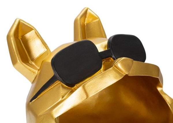 Il soprammobile svuota tasche a forma di bulldog in resina oro è un oggetto decorativo molto elegante e utile per riporre le chiavi o altri piccoli oggetti che si hanno in tasca. Ha la forma di un bulldog stilizzato e realizzato in resina color oro, molto elegante e resistente.