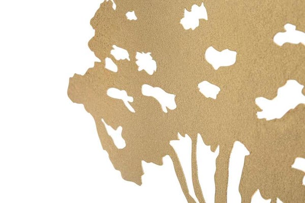 Questo oggetto presenta un design che ricorda un albero stilizzato, realizzato in metallo dorato satinato.