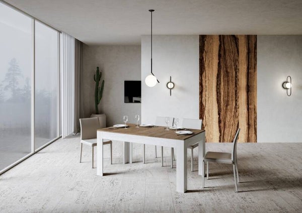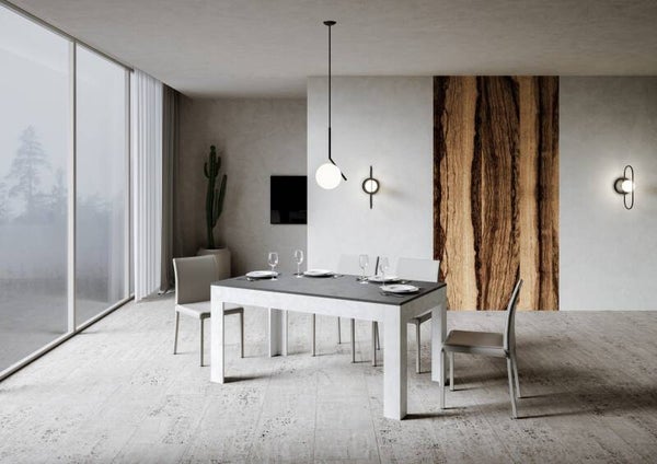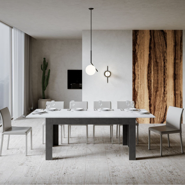 Tavolo BIBI da 160 cm allungabile fino a 220 cm proposto nella versione con piano e base in diverse finiture, a creare un piacevole contrasto visivo in grado di esaltare e apportare personalità a qualunque spazio o ambiente.
