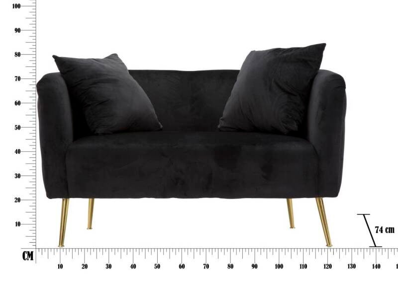 Lo schienale presenta una lavorazione capitonnè con eleganti bottoncini in tinta, aggiungendo un tocco di prestigio e classe al design complessivo. Completo di 2 cuscini quadrati d'arredo in tinta, questo divanetto è pensato per offrire non solo stile, ma anche un comfort avvolgente. La solida struttura poggia su quattro piedi in metallo dalla finitura dorata, che aggiungono stabilità e un tocco di lusso.