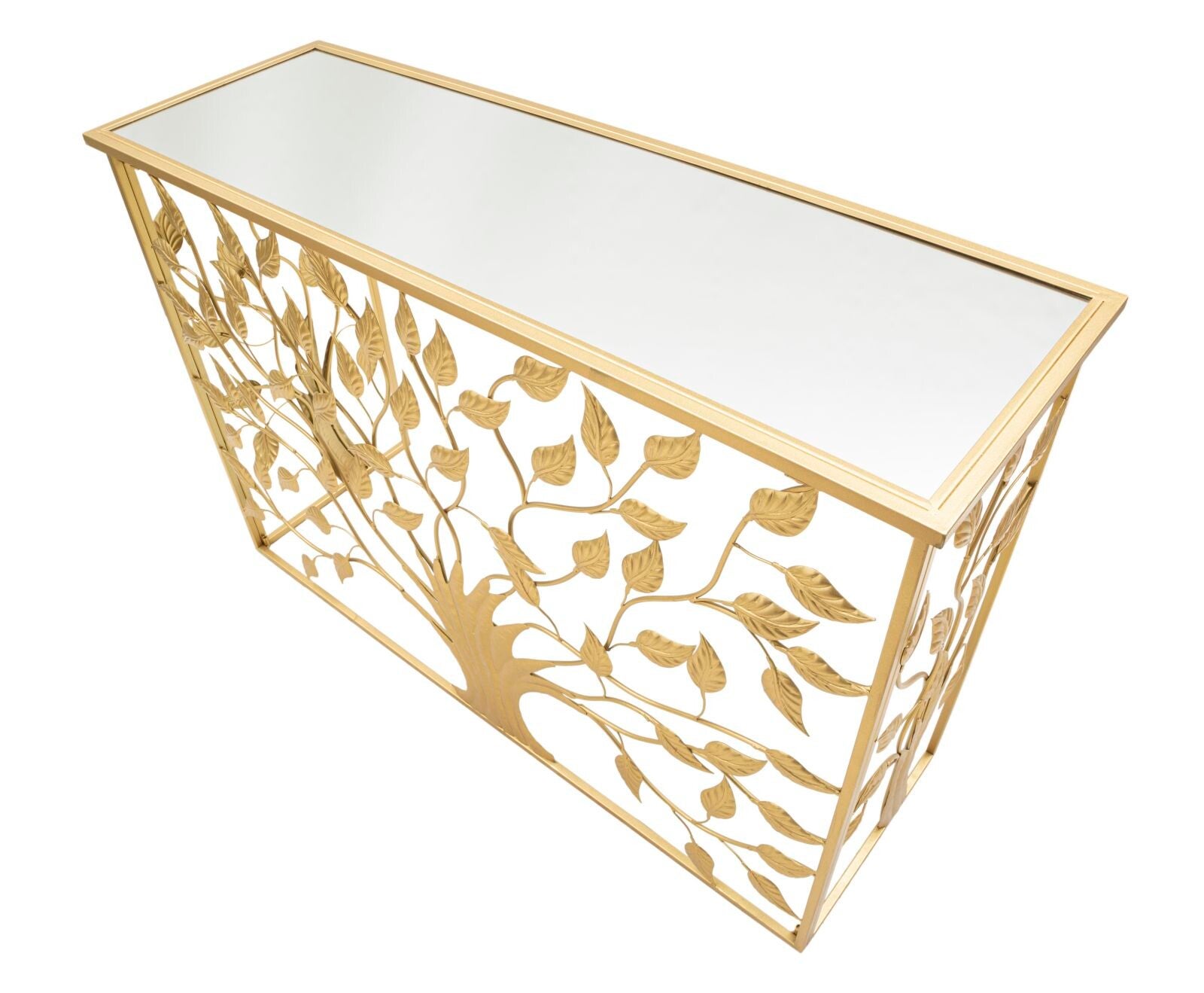 La nostra consolle rettangolare in metallo dorato ALBERO trasforma l'ordinario in straordinario con il suo design esclusivo e sofisticato.