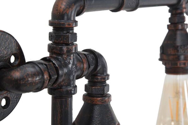 Lampada da muro in stile Steampunk, realizzata con tubature in ferro, perfetta per chi ama uno stile audace e distintivo.