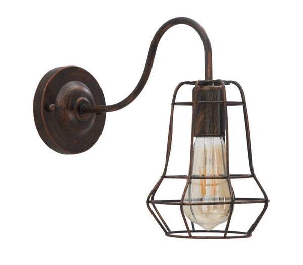 Lampada da muro industriale che aggiunge un tocco di robustezza ed eleganza a qualsiasi ambiente grazie al suo design unico in metallo effetto anticato. Il suo aspetto vintage è perfetto per arredare qualsiasi ambiente, offrendo un'illuminazione calda ed accogliente che evoca un fascino retrò.