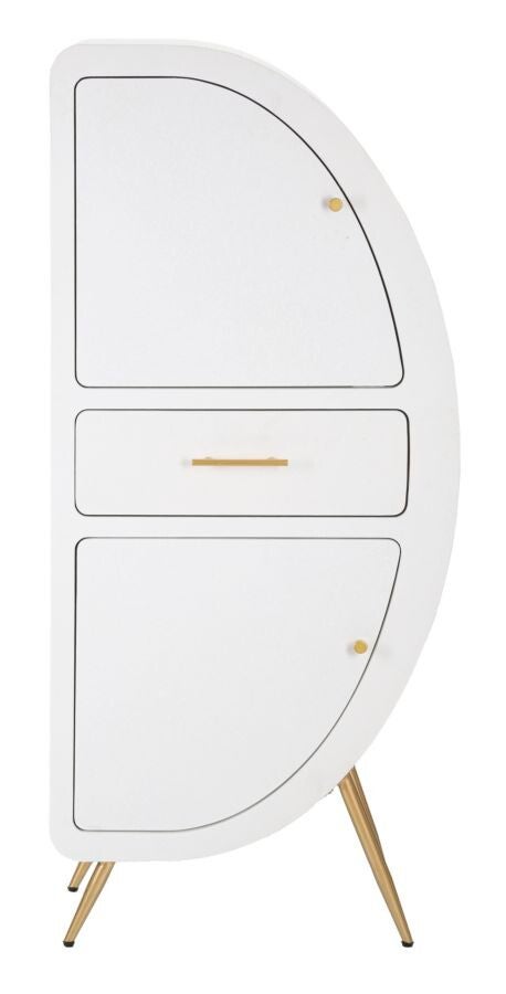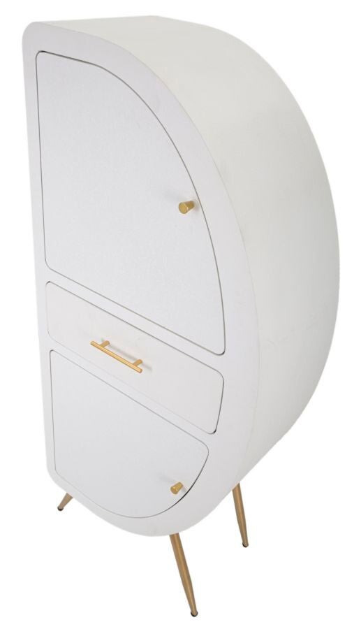 Questo elegante mobile, dalla forma semi-ovale distintiva, è progettato per aggiungere un tocco di modernità e funzionalità a qualsiasi ambiente, rendendolo perfetto per B&B, residence, camere d'albergo e anche per uffici.