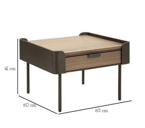 E' dotato di due cassetti, ideali per riporre oggetti di uso quotidiano come telecomandi, caricabatterie, riviste o piccoli accessori, consentendo di mantenere la superficie libera e ordinata. La maniglia minimalista in metallo, integrata al frontale del cassetto, ne facilita l'apertura.