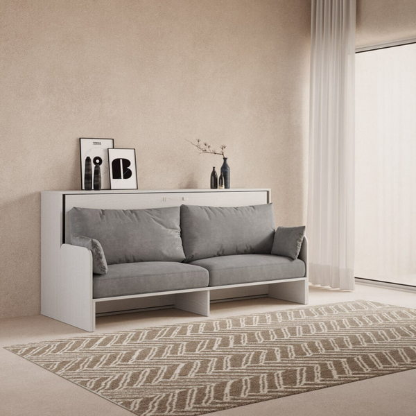 Questa idea salvaspazio è ideale per il living: funge da divano comodo di giorno e si trasforma velocemente in un letto confortevole quando serve, offrendo sia comfort che praticità, ideale per chi ha a disposizione spazi ridotti.