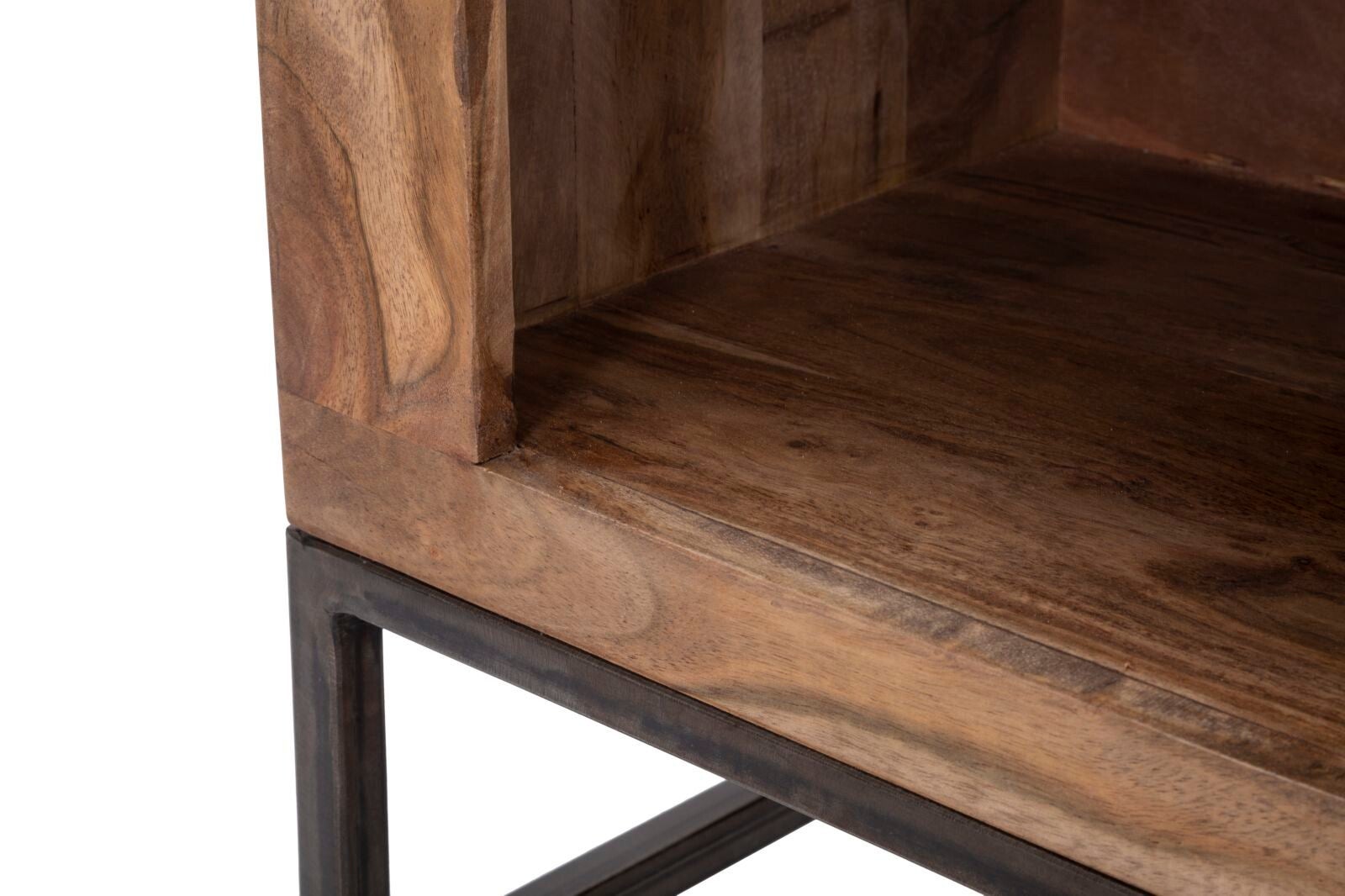 Realizzato in legno di acacia nilotica, questo comodino vanta una finitura naturale che esalta le calde venature del legno, donando un'estetica autentica e senza tempo.