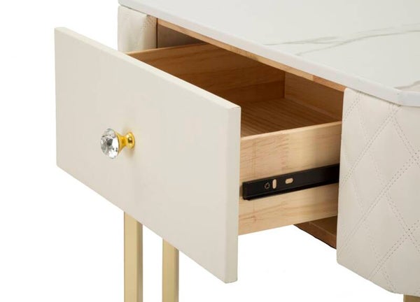 - Cassetto centrale con maniglia effetto cristallo, per custodire oggetti personali, trucchi, chiavi o documenti.