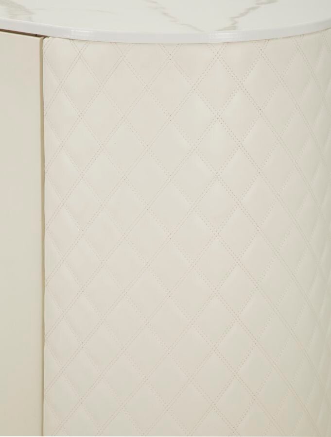 - Struttura arrotondata con lati rivestiti in ecopelle trapuntata color panna, dal tocco soffice e raffinato.