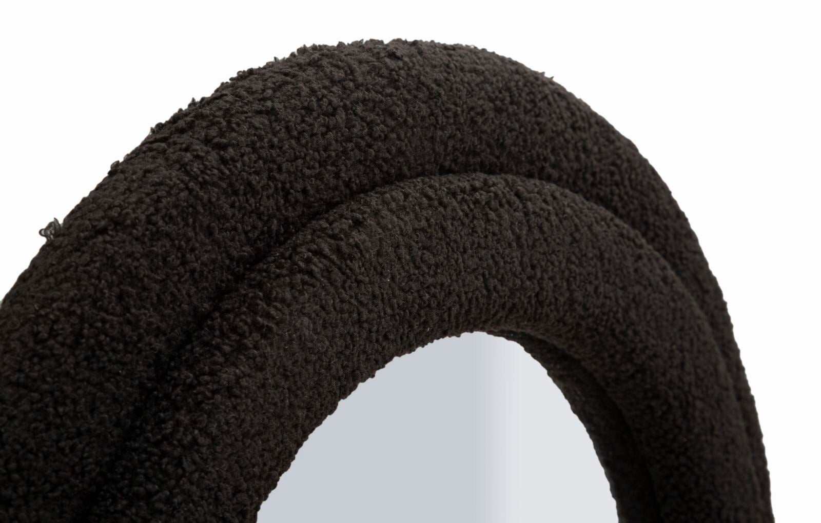 La sua cornice in morbido tessuto nero effetto bouclé, modellata in un profilo ondulato continuo, crea un gioco di movimento che la rende un vero pezzo iconico, perfetto per dare stile anche agli spazi più minimal.